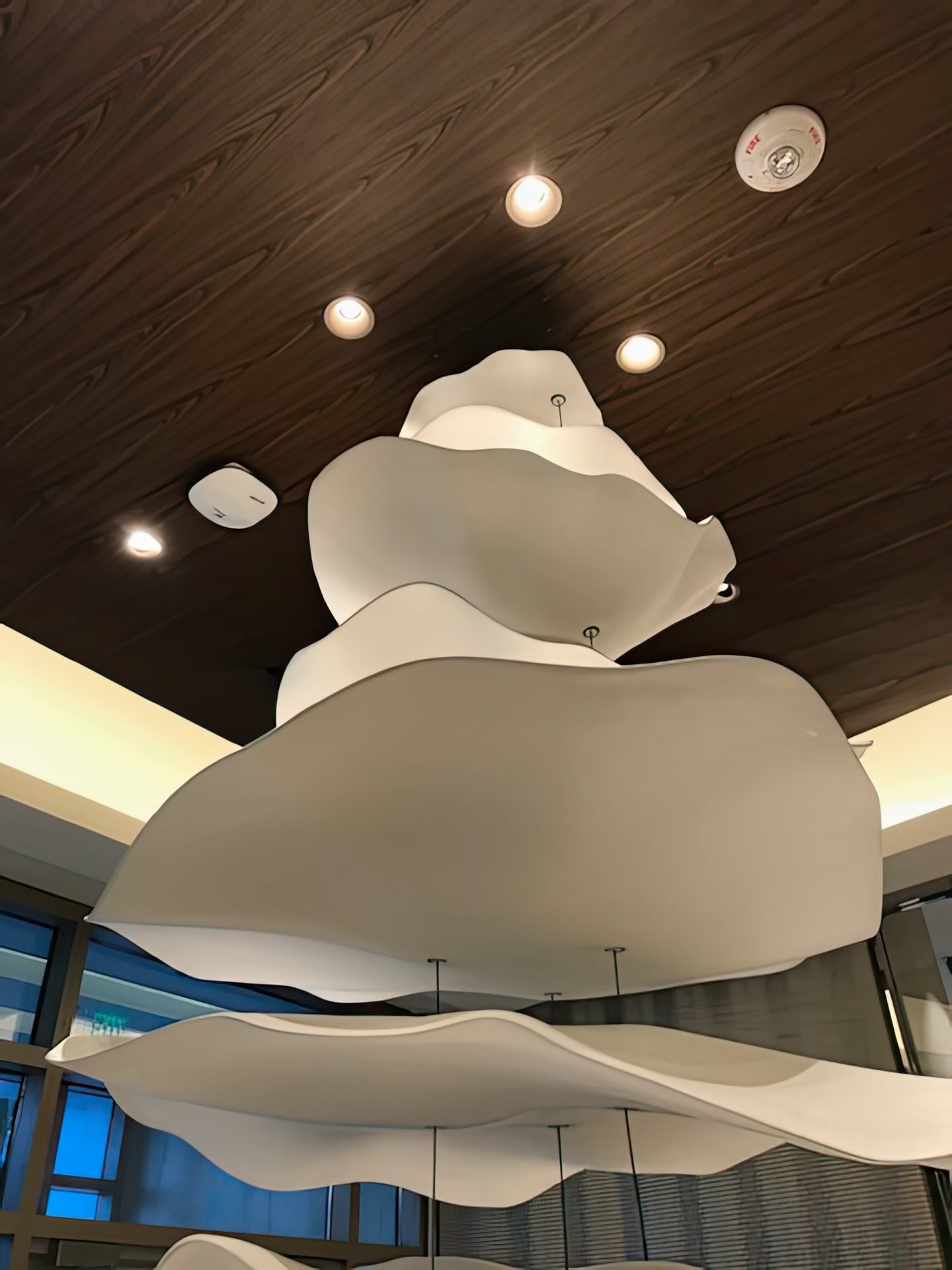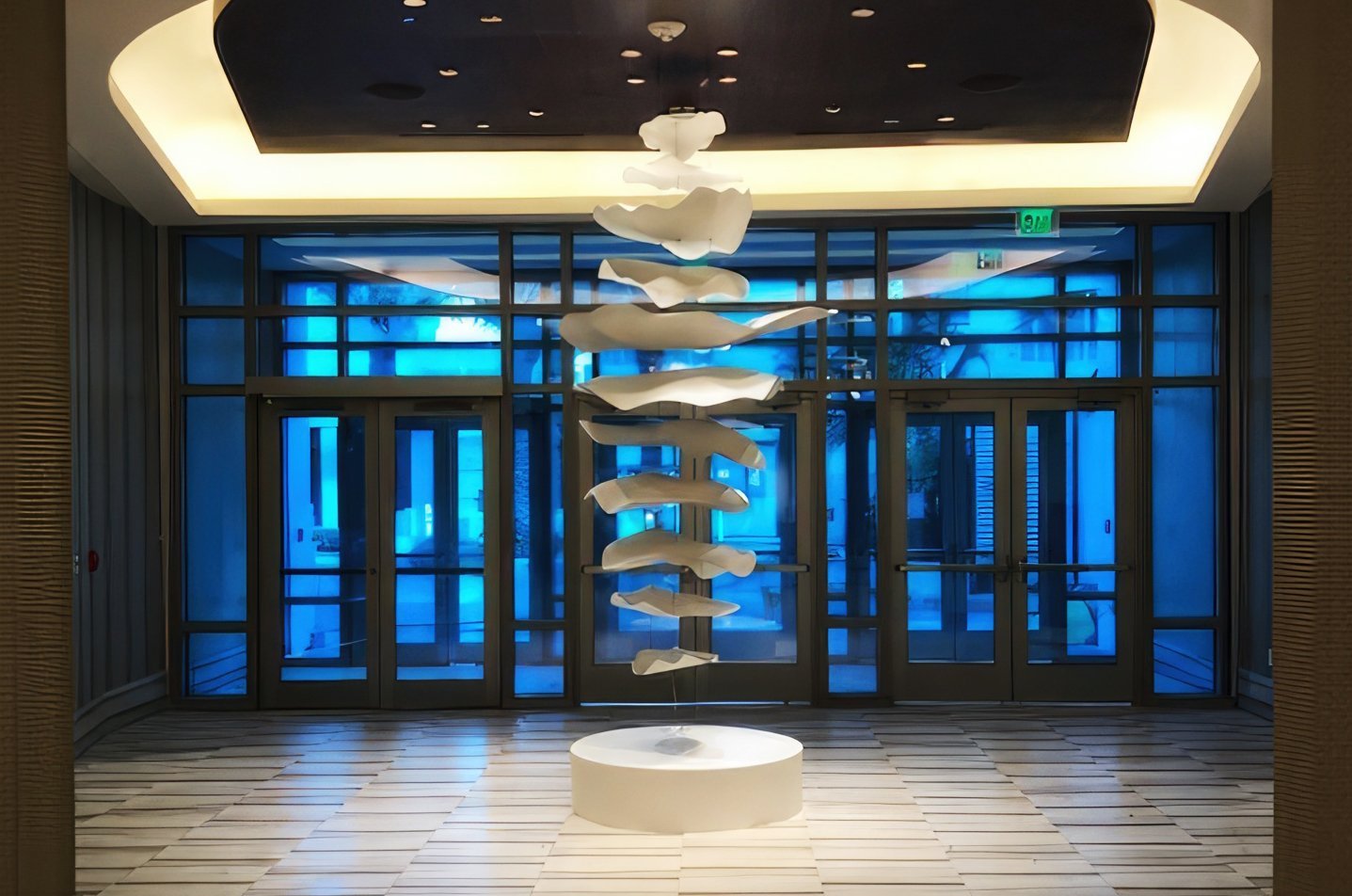 Design and fabrication required 3D modeling and robotic tooling, this project embodies an ethereal calm. Qualities of lightness, floating, and movement were perfect for this spa entrance.